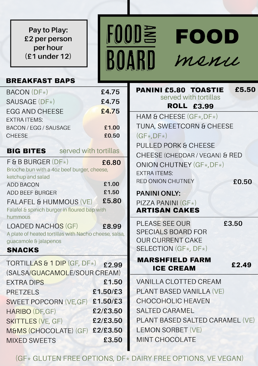 Welcome to Food and Board, a delightful board game café nestled at 5 Elizabeth Parade, Tudor Dr, Yateley GU46 6BY, United Kingdom. This unique spot combines the joy of playing your favorite board games with a menu that tantalizes the taste buds, making it a perfect refuge for families, friends, and couples looking to bond over food and fun.